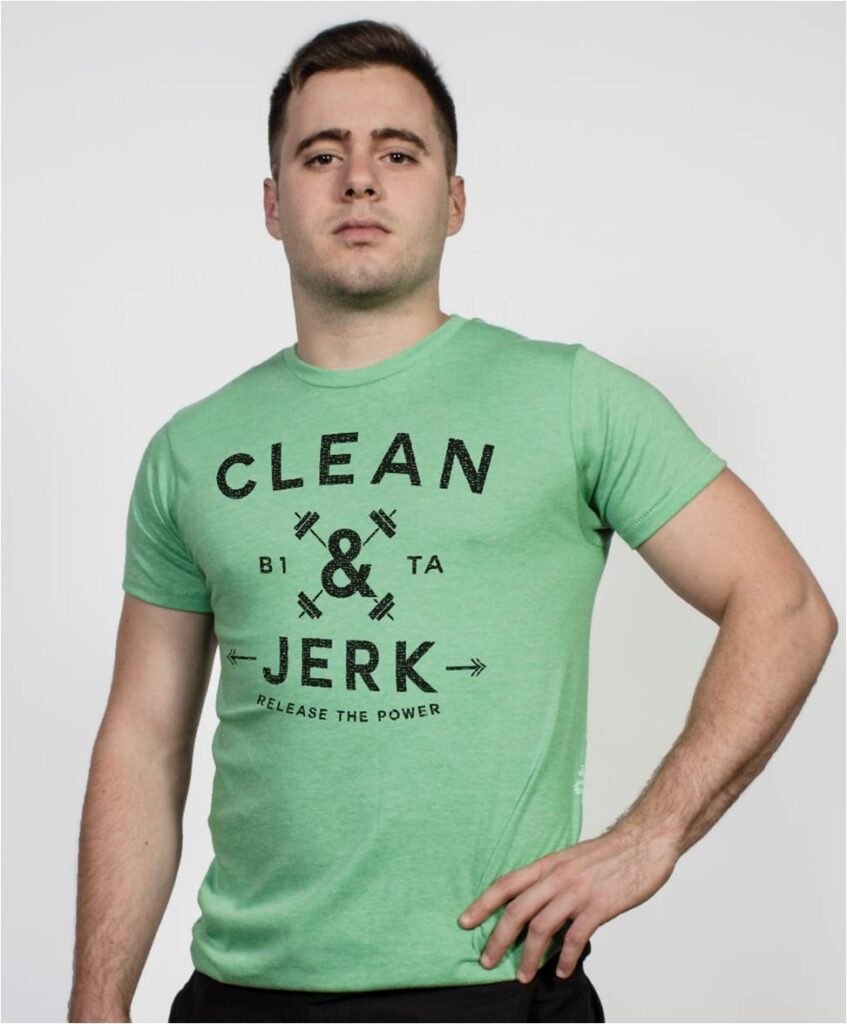 50% Cotton, 50% Polyester – Everyone like the feeling of power that only a good “Clean and Jerk” can give us. It doesn’t matter if you are rookie, or a professional, the satisfaction of a “Clean & Jerk” well done, is the same! We honor this great exercise of weightlifting with this model.